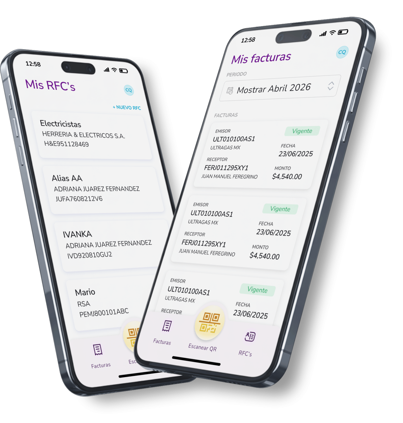 Guarda tus RFCs una sola vez. La app llena los campos por ti automáticamente.